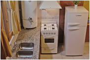 Cocina con horno, vajilla